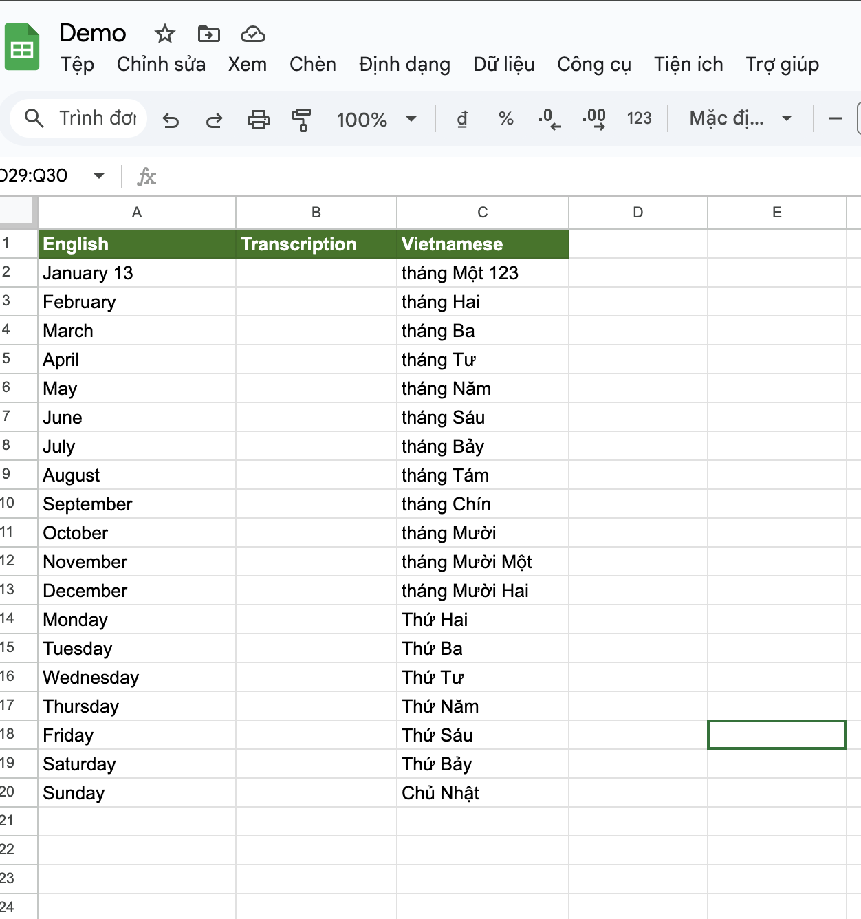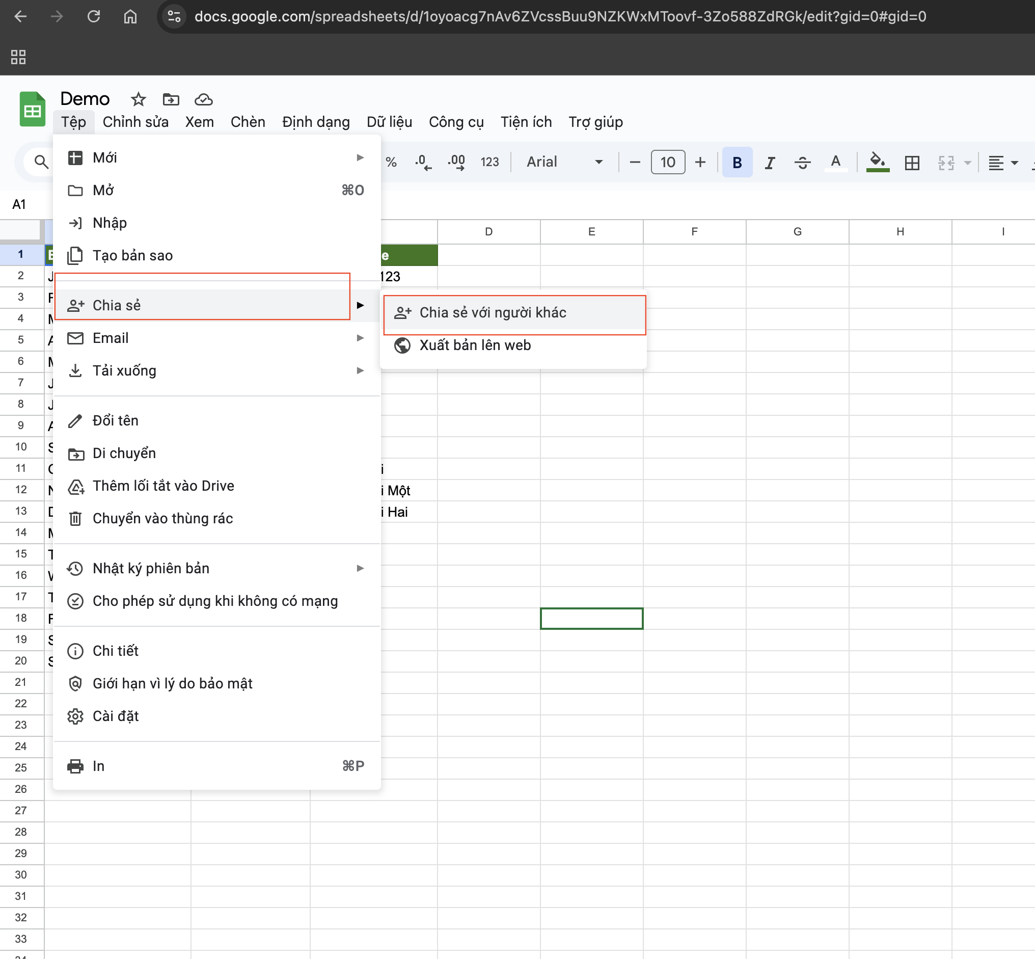 - Tạo file google sheet theo cấu trúc