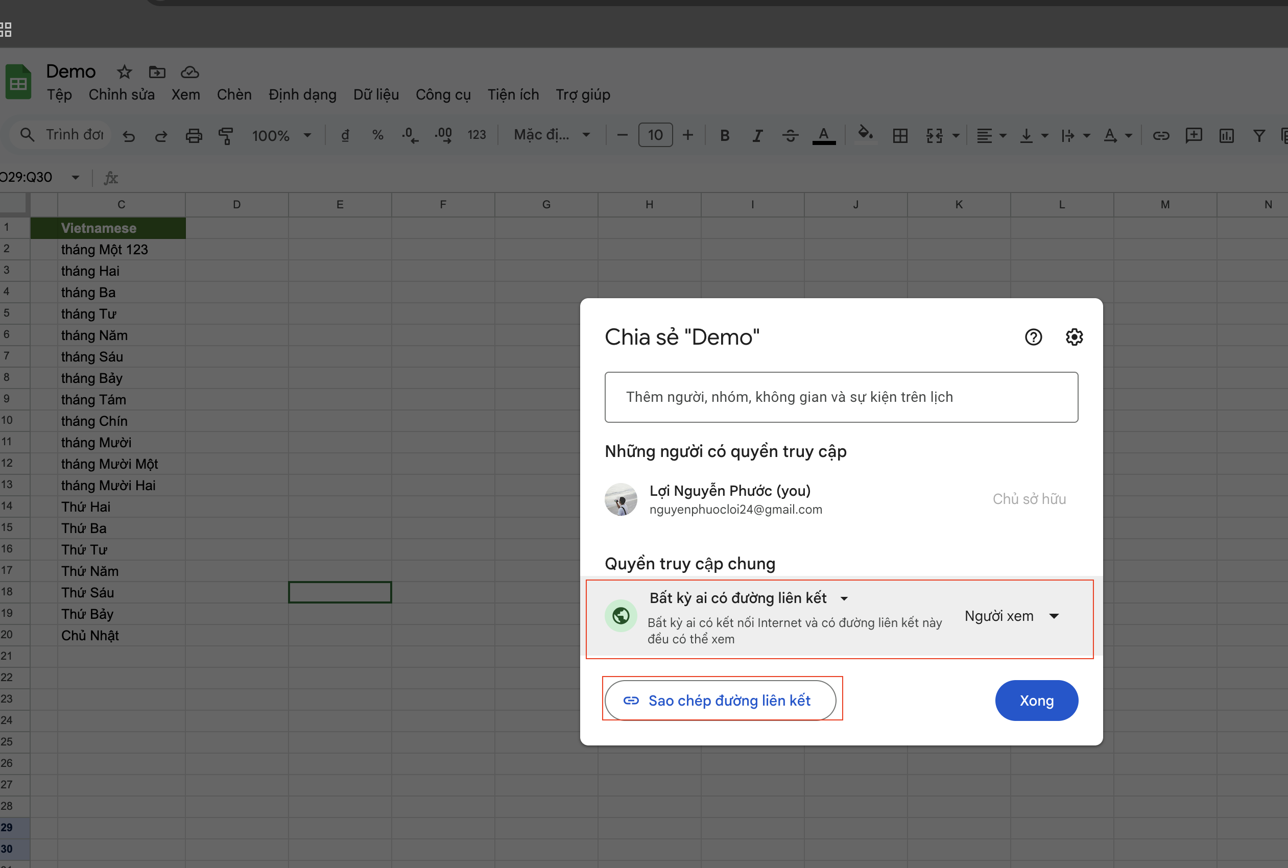 Link mẫu : https://docs.google.com/spreadsheets/d/1oyoacg7nAv6ZVcssBuu9NZKWxMToovf-3Zo588ZdRGk/edit?usp=sharing